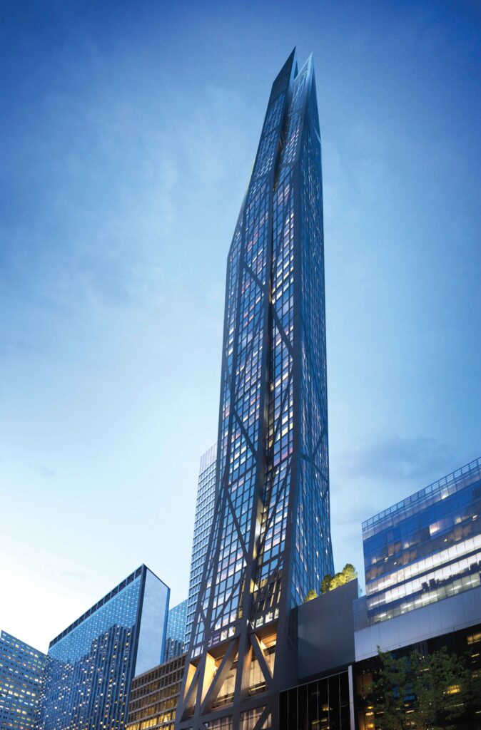 The edifice, known simply as 53W53, has permanently reshaped the Midtown skyline, asserting itself as both an architectural statement and a destination in its own right. Upon its completion in 2019, it made the top 10 of the tallest buildings in the city (dropping to 12th tallest by the start of this year). It measures 320 metres (1,050 feet) from the lobby to the tip of its tallest spire and comprises 77 storeys – though due to quirks of the internal numbering system, the top level of apartments occupies the 87th floor.
